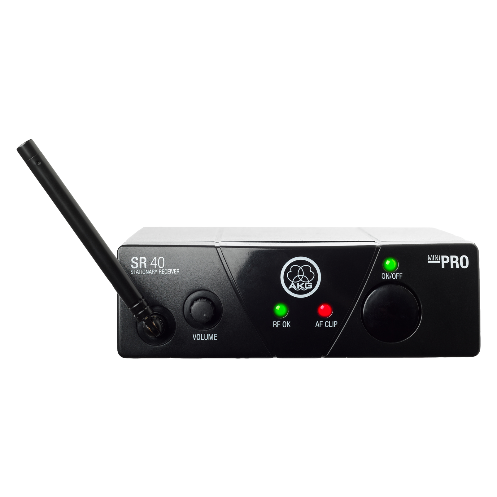 SR40 Mini 无线固定接收器性能强大,即使是火爆的演出也可发出清澈的声音。它具有指示开/关状态,接收信号强度(RF OK)和音频削波(AF CLIP)的三个状态 LED。此外,接收器还提供音量控制电位计和无噪音开/关,以保护与其连接的扬声器。 SR40 Mini 通过 ¼" 插孔接头提供一个平衡输出。随附的开关模式电源可在 110 到 240VAC 的任何交流电压下工作,配有欧规、英规和美规的适配器。