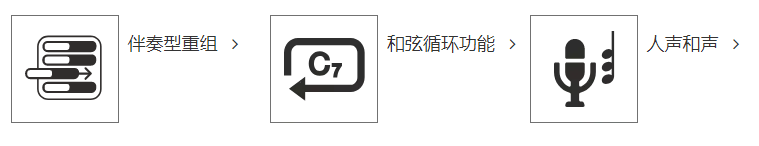 和声循环功能,让您能够录制一段和声进行并播放出来,此时您的左手不再需要弹奏和弦,进行更自由、更灵活的演奏表现。